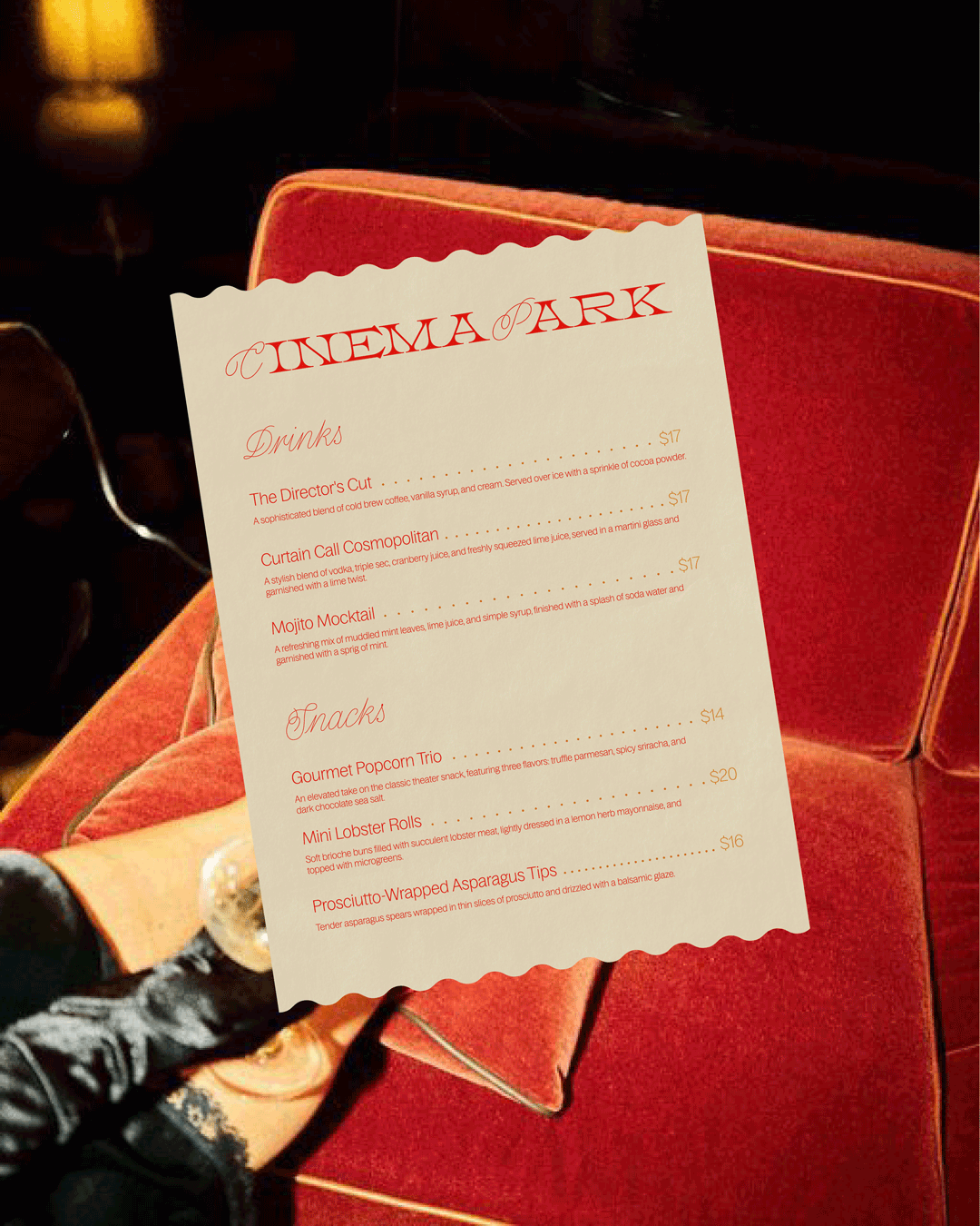 Cinema Park reimagines the movie-going experience by blending a nostalgic drive-in theater with modern attractions like a snack bar, outdoor bowling, and a photobooth. Designed to engage a younger generation, it brings fresh energy to in-person entertainment. In a streaming-dominated world, Cinema Park celebrates the joy of shared, real-life moments.