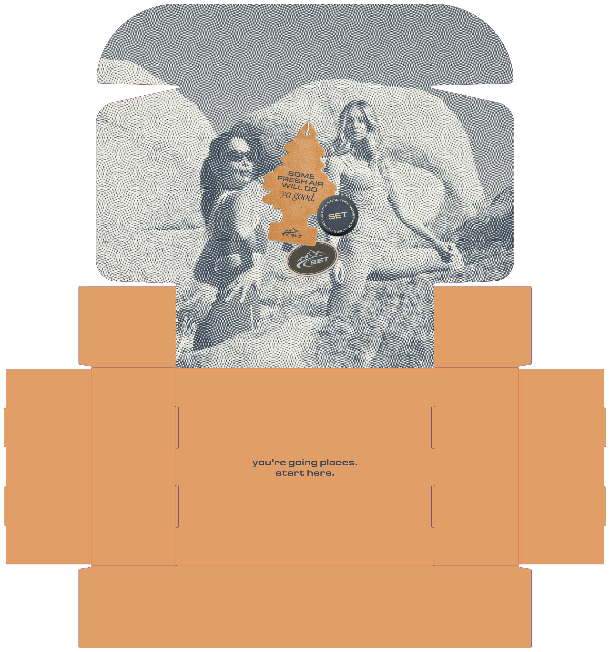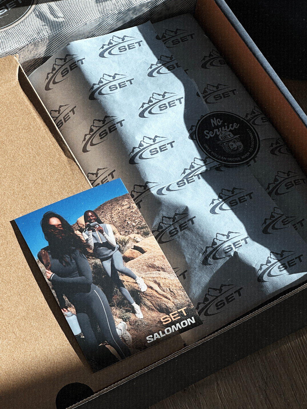For SET Active’s NO SERVICE drop, we introduced a gorp-core inspired collection in collaboration with Salomon, shot against the rugged landscape of Joshua Tree. Anchored by the tagline “Only you can decide when to disconnect,” the campaign explores intentional presence through versatile layers designed to move seamlessly from trail to everyday. The launch extended into social and PR with SET Active’s first-ever VIP mailer, creating a tactile moment that brought the story off-screen and into the real world.